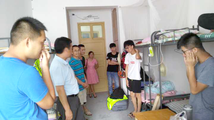 13日下午,陈飞一行到学生宿舍与同学们亲切交谈,询问同学们在实习基地的学习和生活状况,交流实习的收获和感受。陈飞勉励大家要珍惜野外实习的宝贵机会,发扬艰苦朴素、求真务实的校训精神,在实习中打下扎实基础,增强专业知识。在与老师们座谈中了解到,秭归近期为多雨天气,陈飞强调,各实习队要根据天气情况适时调整实习路线,避免雨后去有滑坡风险的危险路线,确保实习安全。