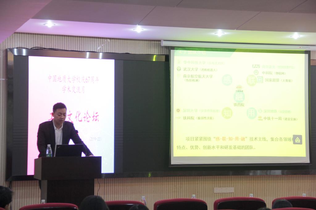 刘奥以“地下设施工程安全创新”为题,介绍构建城市地下基础设施运行综合监测体系,该体系可及时感知风险,准确判断风险度,进而快速形成应急对策,实施灾后恢复工作,有助于推动我国城市地下基础设施综合监测技术达到国际领先水平。同时,刘奥根据三大现实需求—灵敏感知、有效决策、科学管控展开讲解,向同学们展示了已有的研究成果。