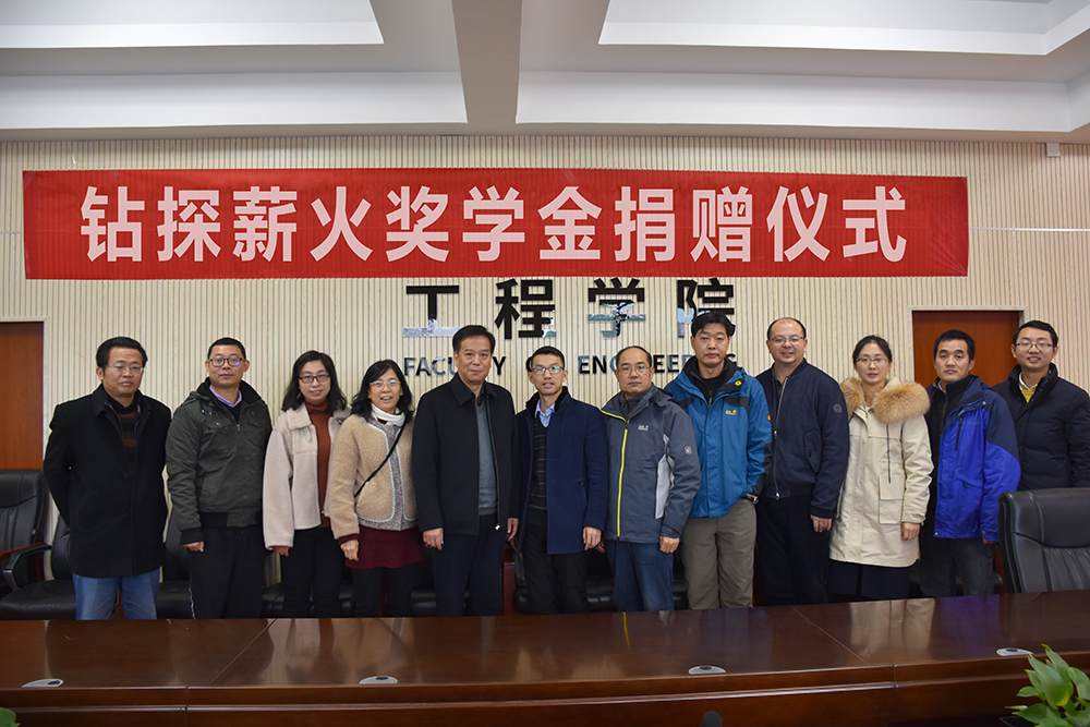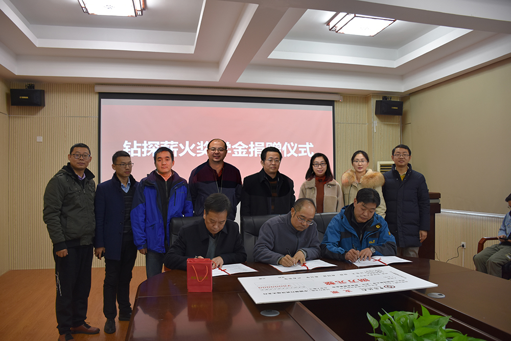12月20日,williamhill中国“钻探薪火奖学金捐赠仪式”在工程楼315会议室举行。湖北省城市地质工程院勘查部主任汪发文、副主任徐俊,校友工作与教育基金管理处副处长吕占峰,williamhill中国党委书记陈飞,副书记江广长,勘察与基础工程系教授段隆臣、蔡记华、卢春华及2017级部分学生代表参加捐赠仪式。