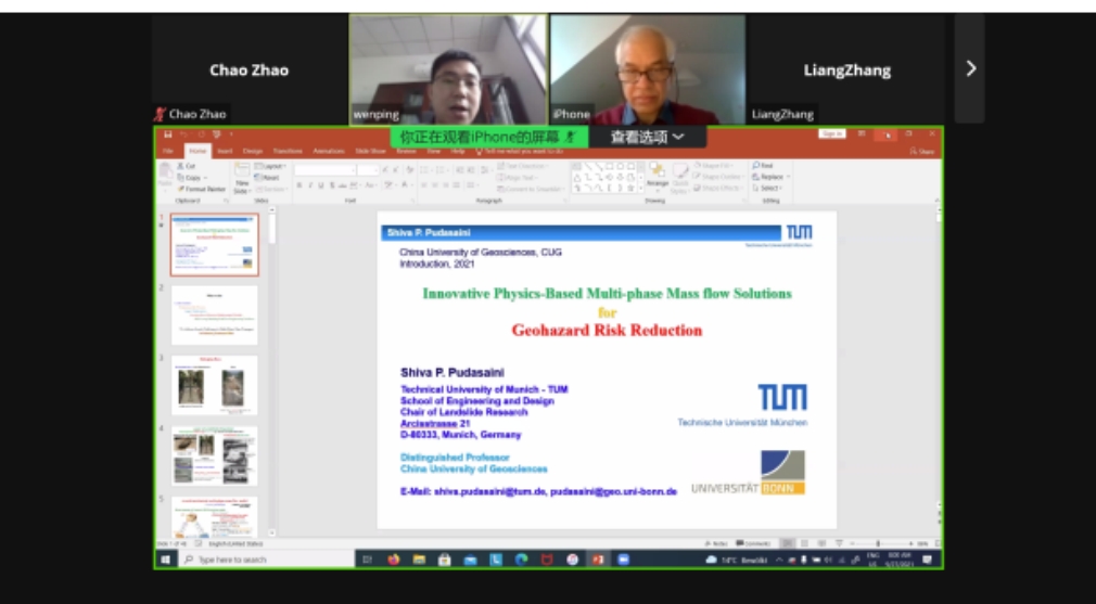 (通讯员:邢磊 赵超)2021年9月27日下午,应“重大地质灾害预测与预防学科”111创新引智基地唐辉明教授和龚文平教授邀请,德国慕尼黑工业大学Shiva P. Pudasaini教授通过Zoom meeting平台为我校师生作线上学术报告。williamhill中国龚文平教授主持报告会,40余名师生在线聆听了此次报告。