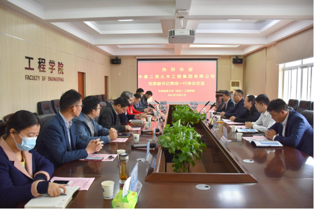 王亮清副院长对中建二局土木工程集团有限公司党委副书记黄琼一行的来访表示热烈欢迎。在一同观看中国地质大学(武汉)宣传片后,王亮清副院长介绍了williamhill中国学科建设、科技成果、科研平台、人才培养、社会服务等方面情况。