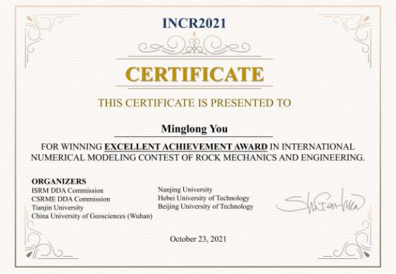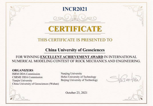(通讯员 张美霞)近日,在第一届国际岩石力学与工程数值仿真大赛中,我院学子取得一等奖、杰出贡献奖的好成绩,学校荣获卓越成就奖。
