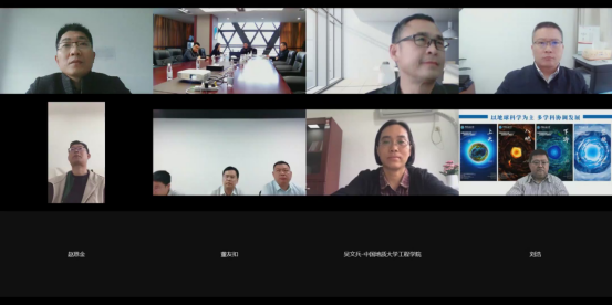 (通讯员 陈卫明)4月15日上午,williamhill中国、海洋学院,磐索地勘科技(广州)有限公司与启迪海洋科技产业研究院成功举行线上交流会。中国地质大学(武汉)williamhill中国党委书记李红丽、海洋学院党委书记成军、williamhill中国副院长窦斌、磐索公司总经理陈奇博士与启迪海洋科技产业研究院执行院长董焱等18人参加会议。会议由陈卫明副教授主持。
