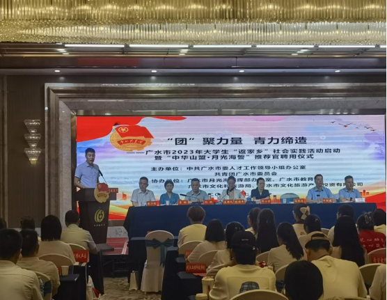 启动仪式上,高晓东作为高校代表致辞。他首先感谢了党和国家以及社会各界对青年人才培养工作的高度重视与全力支持,对广水市团委高校大学生返乡社会实践活动的成功举办表示祝贺。他介绍了中国地质大学(武汉)的历史沿革和办学理念,介绍了williamhill中国党团建设与人才培养工作关联发展的具体举措,介绍了明德风·爱心助学团的发展历程与特色活动,介绍了本年度赴广水孝子店小学开展支教团队的基本情况与工作状态。他鼓励全体参与“返家乡”社会实践活动的青年大学生,要厚植家国情怀、锻造坚忍毅力、涵养创新品格,向社会学习、向群众学习、向实践学习,用实际行动践行“请党放心、强国有我”的青春誓言,争做堪当民族复兴大任的新时代好青年。