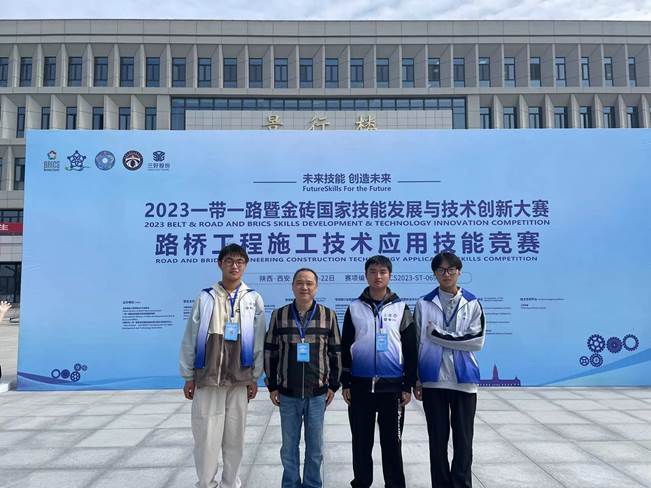 (通讯员 周小勇 童宋金)10月20日至22日,2023一带一路暨金砖国家技能发展与技术创新大赛之路桥工程施工技术应用赛项总决赛在陕西西安举办,这是由金砖国家工商理事会中方理事会、一带一路暨金砖国家技能发展国际联盟、中国科协“一带一路”暨金砖国家技能发展与技术创新培训中心主办,中国发明协会、教育部中外人文交流中心联合主办的赛事。来自全国43所高校75支队伍参赛队伍同台竞技。我院周小勇和欧阳辉两名教师指导的参赛队伍谭坤、童宋金、何柳星三名同学,经过激烈角逐,夺得银牌,斩获二等奖,中国地质大学(武汉)荣获优秀组织奖。