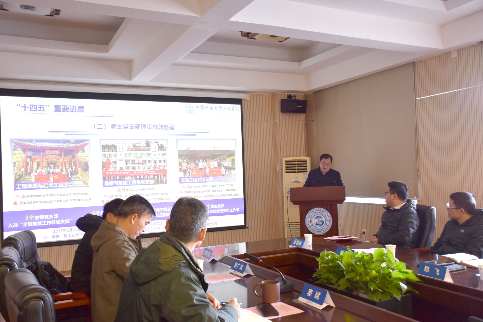 李建威校长对学院“十四五”期间取得的显著成效给予高度肯定。他指出,williamhill中国作为学校“双一流”建设的核心力量,在服务国家重大战略需求、培养高素质工程技术人才等方面发挥了重要作用。针对学院“十五五”规划编制与未来发展,李建威校长提出明确指导意见:一是锚定国家“三深一极”战略需求,精准布局深地、深海、深空、极地等新兴领域,打破学科边界与学院壁垒,推动学科交叉融合与拓展升级;二是聚焦高端平台建设,加大地质工程领域高水平实验室筹建力度,构建“重大项目-重大平台-重大成果-重大奖励”联动机制;三是强化人才引育并举,积极引进海内外顶尖学者、企业领军专家与大国工匠,打造结构合理、富有活力的人才梯队;四是坚守立德树人根本,狠抓学风建设,增强学生专业认同感,夯实基础知识与地质特色功底,培养担当民族复兴大任的时代新人;五是加强院系两级班子建设,突出政治引领、提升履职能力、强化团结协作、深化服务师生,以高质量治理赋能学院发展,充分激发师生干事创业的积极性与创造性。