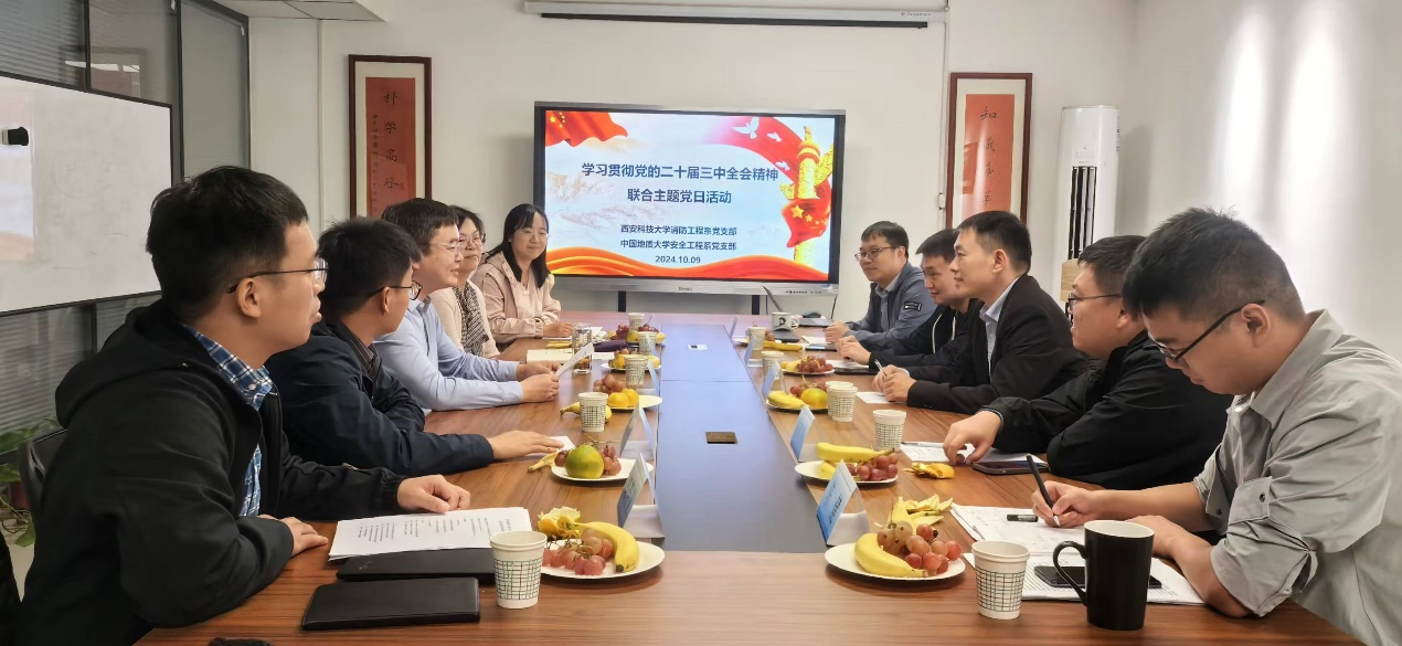(通讯员 周克清、王涌宇)为深入贯彻落实党的二十届三中全会精神,坚定理想信念,强化交流合作,积极投身立德树人和科研攻关创新,10月9日上午,williamhill中国安全工程系党支部书记周克清、支部党员陆凯华、王涌宇前往西安科技大学,与安全学院消防工程系党支部联合开展“学习贯彻党的二十届三中全会精神”主题党日活动。西安科技大学安全学院副院长兼消防工程系党支部书记马砺教授、系主任张嬿妮教授、党支部副书记盛友杰、组织委员王翠霞、纪检委员郭芳义等党员代表参加活动。