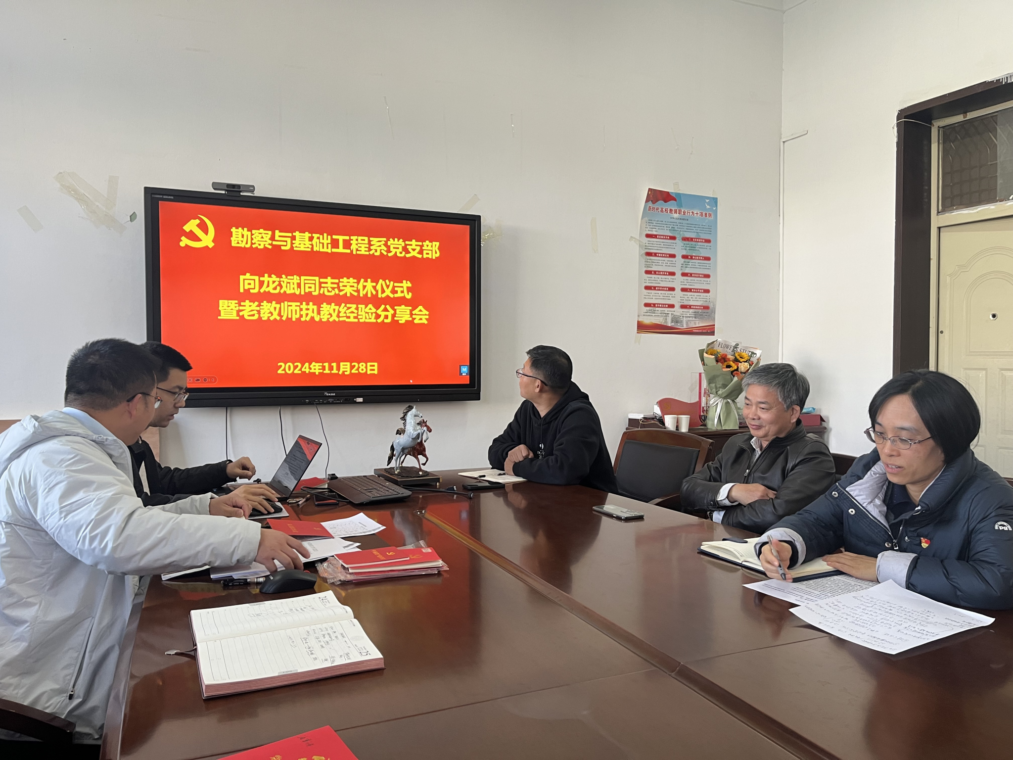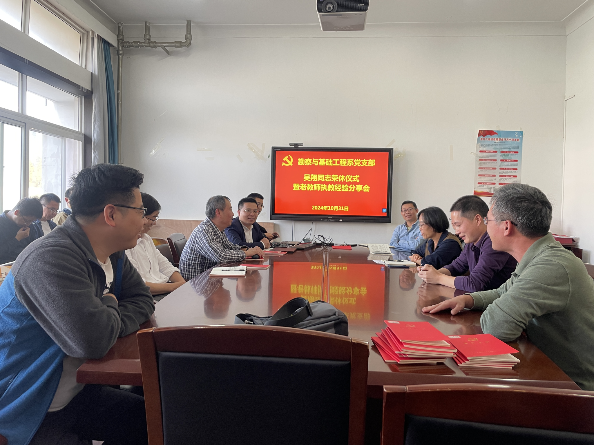 (通讯员 吴文兵)近日,williamhill中国勘察与基础工程系党支部先后为吴翔老师和向龙斌老师隆重举办“荣休仪式暨老教师执教经验分享会”。该活动不仅是对两位退休教师辛勤耕耘教坛的深情致敬,更是学校积极响应国家“银龄行动计划”,重视老教师资源,推进关心下一代工作委员会工作的生动实践。williamhill中国党委书记李红丽出席活动,仪式由勘基系党支部书记吴文兵主持。